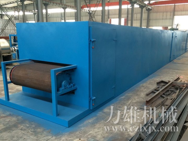 物料由加料器均勻地鋪在網(wǎng)帶上,網(wǎng)帶一般采用12-60目不銹鋼絲網(wǎng),由傳動裝置拖動在干燥機內(nèi)移動。干燥機由若干單元組成,每一單元熱風獨立循環(huán),部分尾氣由專門排濕風機排出,廢氣由調(diào)節(jié)閥控制,熱氣由下往上或由上往下穿過鋪滿物料的網(wǎng)帶完成熱量與質(zhì)量傳遞的進程,帶走物料水份。網(wǎng)帶緩慢移動,運行速度可根據(jù)物料溫度自由調(diào)節(jié),干燥后的成品連續(xù)落入收料器中。上下循環(huán)單元根據(jù)用戶需要可靈活配備,單元數(shù)量亦可根據(jù)需要選取。